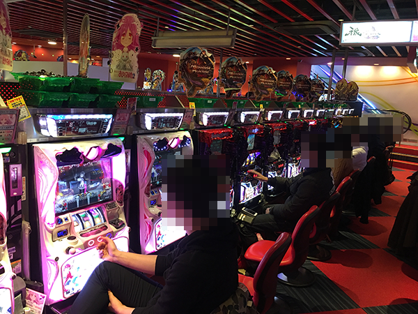 16時頃の1000円/48枚パチスロをみると、「バジリスク~甲賀忍法帖~絆」や「SLOT魔法少女まどか☆マギカ」が盛況。プレイヤーたちのうれしそうな表情からも、満足度の高さが感じられた。