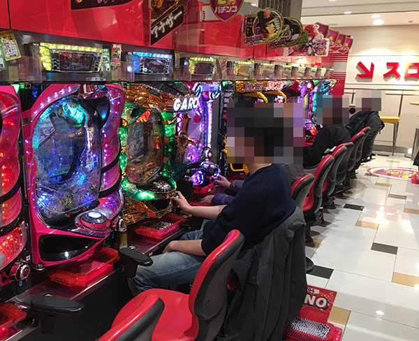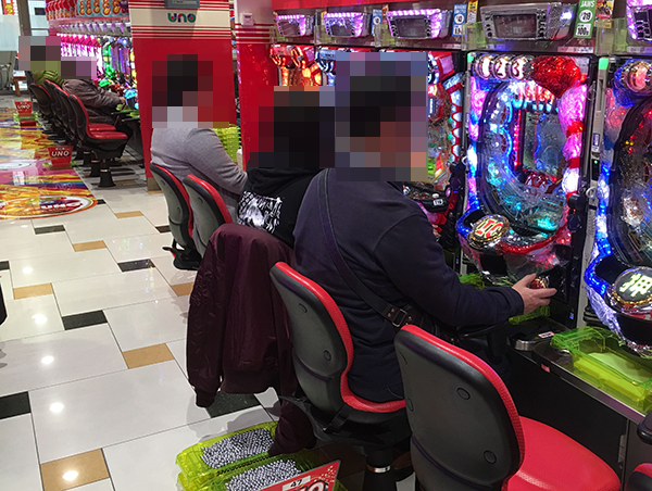 15時すぎのパチンココーナーの様子をうかがうと、4円パチンコでは「CRルパン三世~Lupin The End~」や海物語シリーズ、新機種の「ぱちんこCR真・北斗無双 夢幻闘乱」が活気づいていた。