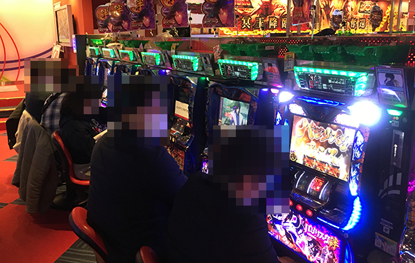 14時頃の1000円/48枚パチスロでは、「バジリスク~甲賀忍法帖~絆」が盛況。満席となっているだけでなく、機種の性能を最大限まで引き出しているようなプレイヤーも多かった。