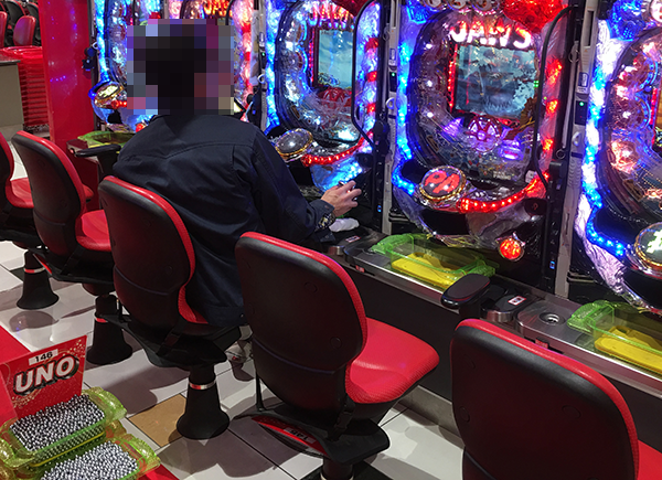 「CR戦国乙女〜花〜」や「CR超シャカRUSH」といった機種にもポテンシャルを発揮できているようなプレイヤーがみられ、明るい笑顔も確認した。