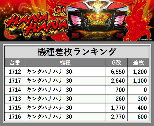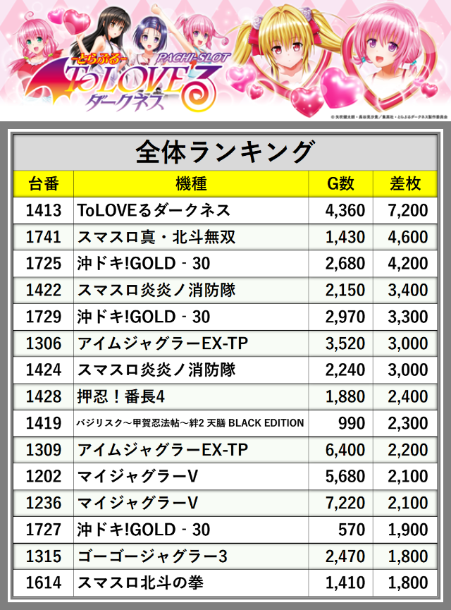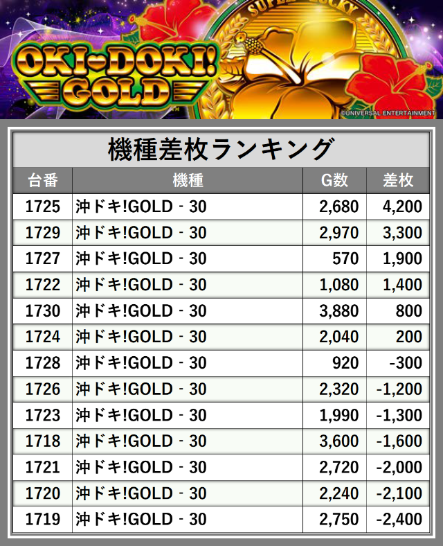 ※差枚数順に掲載しています