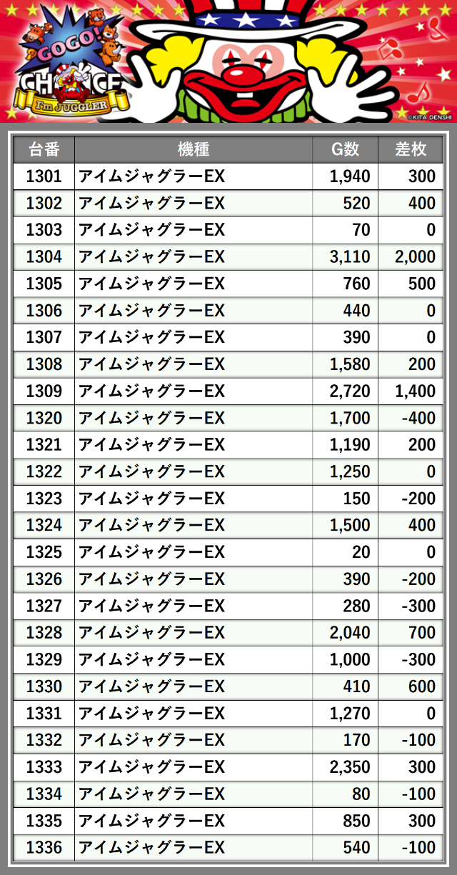※台番順に掲載しています