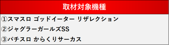 厳選された取材対象機種をはじめ、その他スロット全体から好記録が飛び出した!プレイヤーが楽しんだ1日を下記データにて振り返ってみて欲しい。
