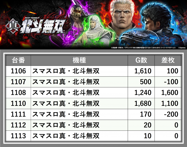 ※台番順に掲載しています