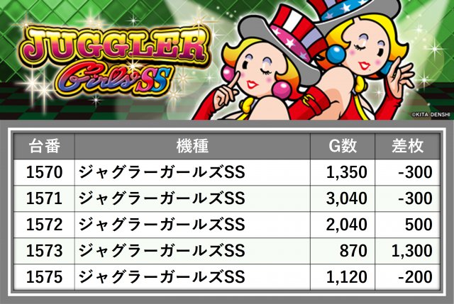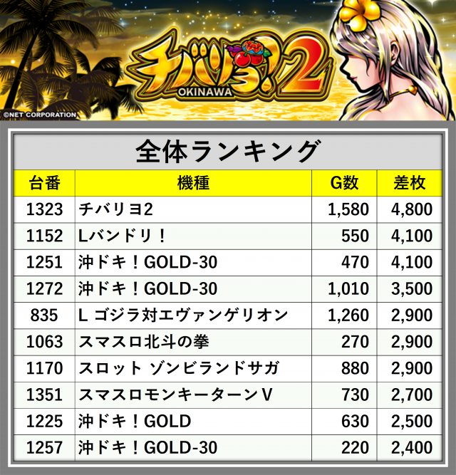 厳選された取材対象機種をはじめ、その他スロット全体から好記録が飛び出した!プレイヤーが楽しんだ1日を下記データにて振り返ってみて欲しい。