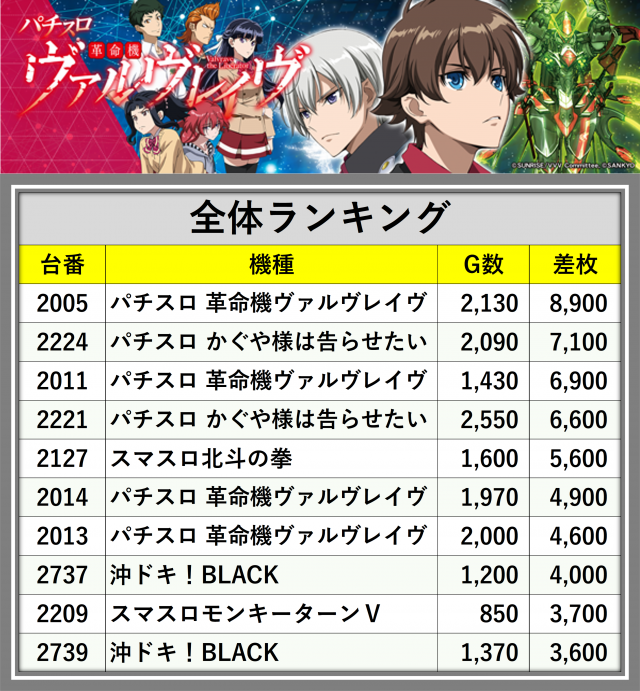 厳選された取材対象機種をはじめ、その他スロット全体から好記録が飛び出した!プレイヤーが楽しんだ1日を下記データにて振り返ってみて欲しい。