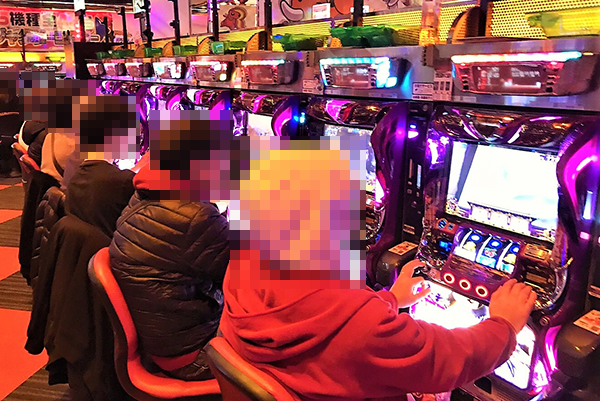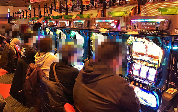 ジャグラーシリーズも人気があり、大勢のプレイヤーでにぎわっていた。