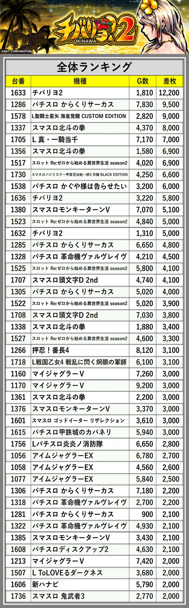 厳選された取材対象機種をはじめ、その他スロット全体から好記録が飛び出した!プレイヤーが楽しんだ1日を下記データにて振り返ってみて欲しい。