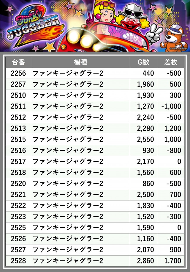 ※台番順に掲載しています