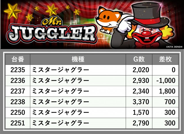 厳選された取材対象機種をはじめ、その他スロット全体から好記録が飛び出した!プレイヤーが楽しんだ1日を下記データにて振り返ってみて欲しい。