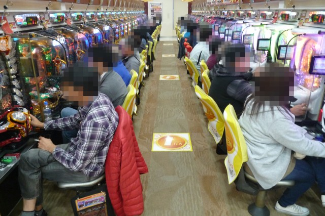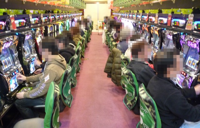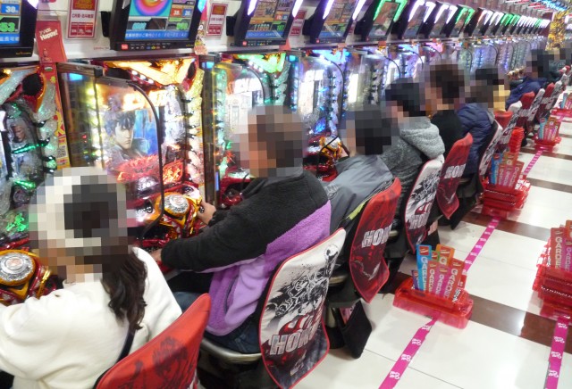 夕方ごろの4円パチンコでは、「ぱちんこCR真・北斗無双」が人気。いたるところでプレイヤーの活躍がみられた。