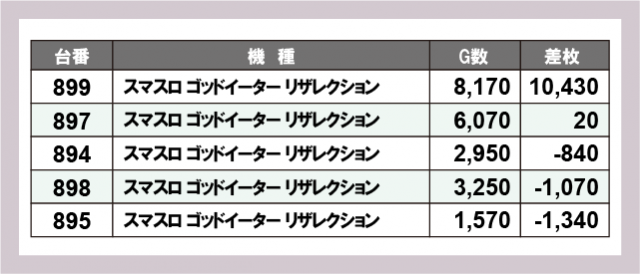 ※差枚数順に掲載しています