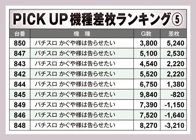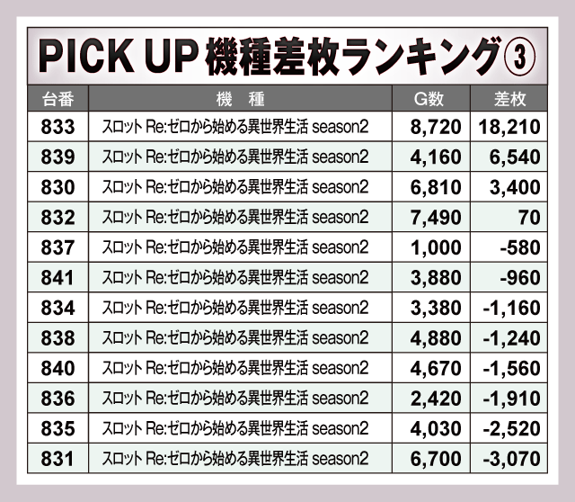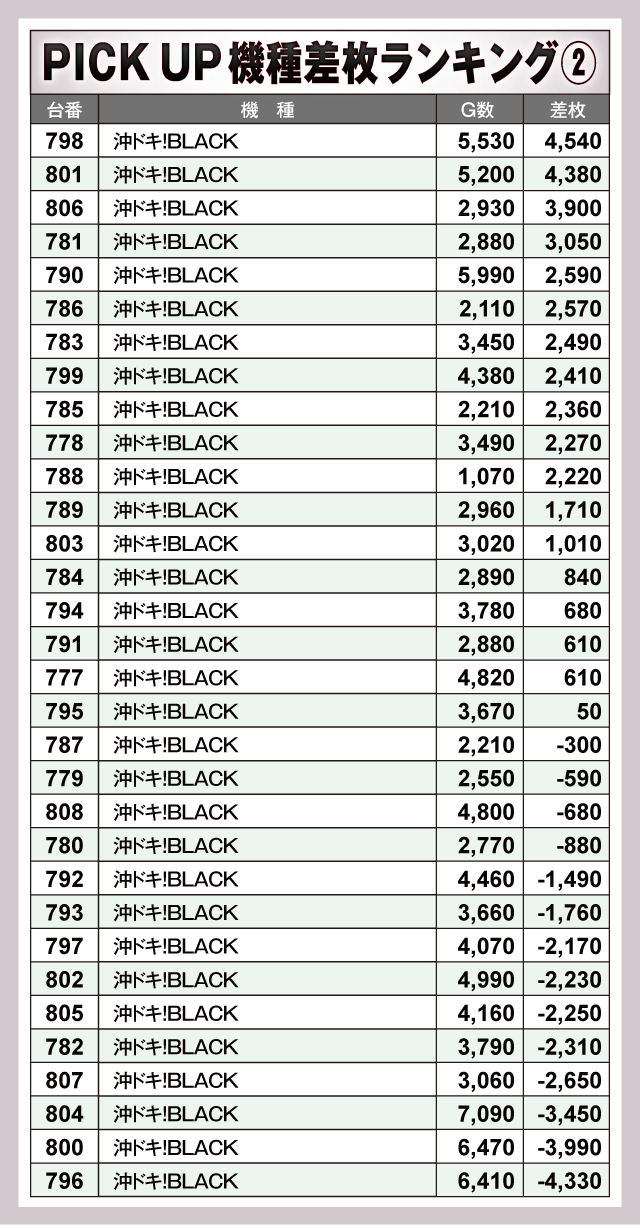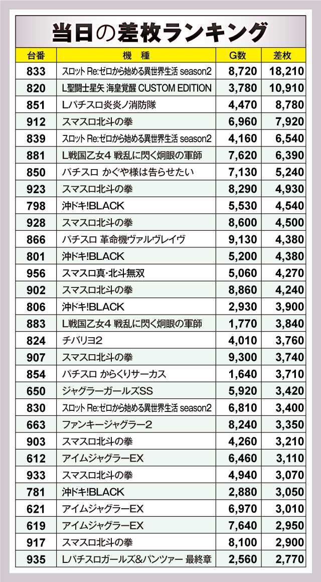 ※差枚数順に掲載しています。