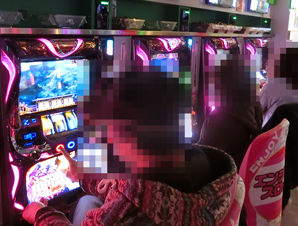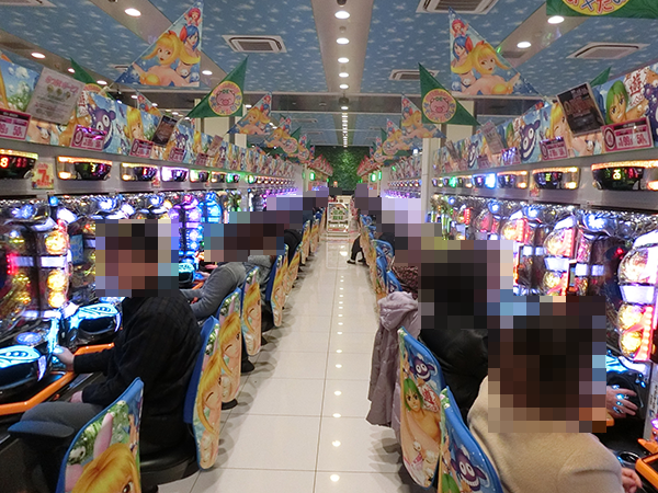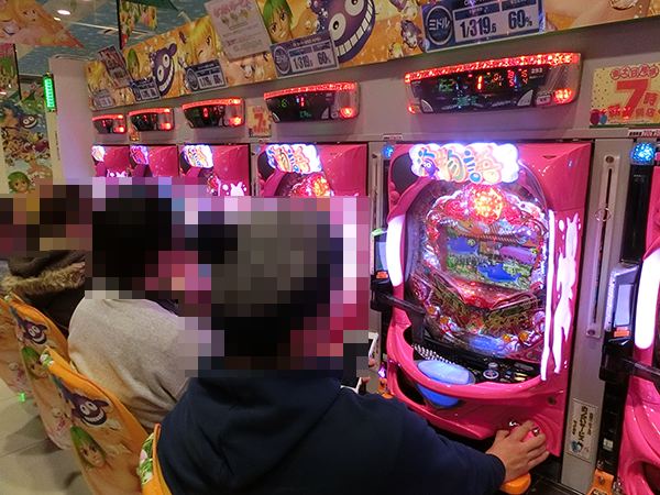 17時頃の2.5円パチンコをみると、「ぱちんこCR真・北斗無双」や「ぱちんこCR銭形平次withでんぱ組.inc」などが盛況。機種のポテンシャルを上手く活かせているような姿もあり、にぎやかな雰囲気に包まれていた。