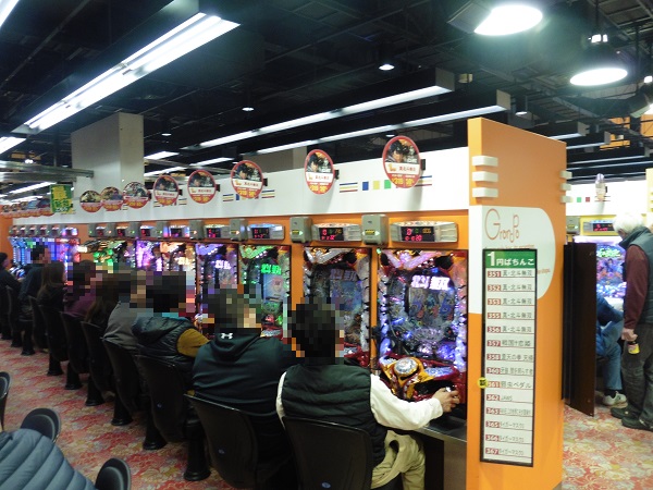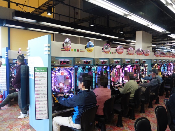 時刻は14時。熱気が伝わってきたのは1円パチンココーナー。特に海物語シリーズの支持は絶大で空台はほぼナシという盛況ぶり。「CRA大海物語3 withアグネス・ラム」の遊パチから「CRスーパー海物語 IN JAPAN 319バージョン」のようなミドルスペックまで、遊技を堪能するプレイヤーであふれていた。