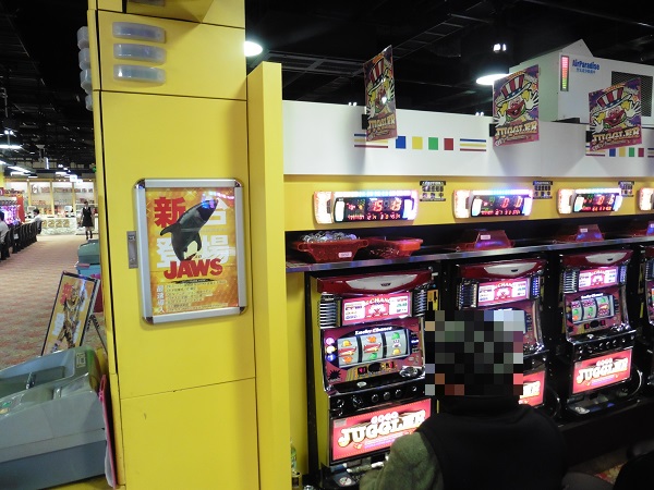 ジャグラーコーナーからは、「ゴーゴージャグラーKK」を笑顔で遊技するプレイヤーを発見。ランプの輝きを思う存分楽しんでいた。