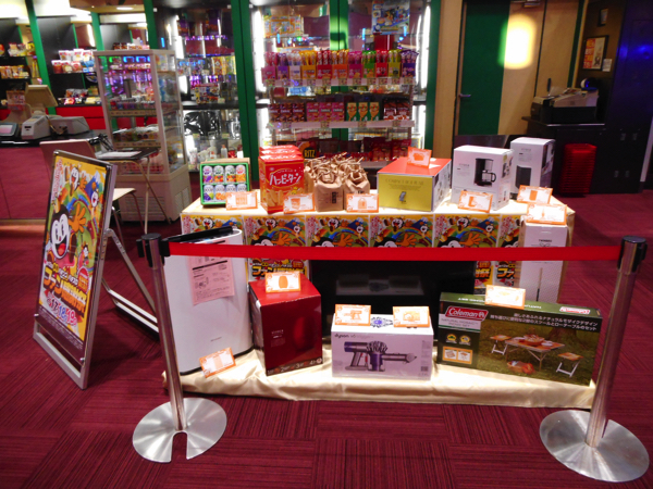 ファン感謝祭の景品が、カウンター横の特設スペースに展示されており、また来店してみようと思える工夫がされていた。