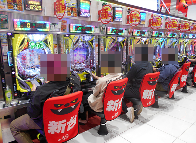 「沖ドキ!BLACK」でも、プレイヤーたちは遊技を満喫している様子。