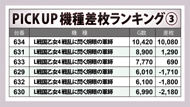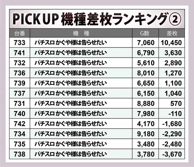 ※差枚数順に掲載しています。