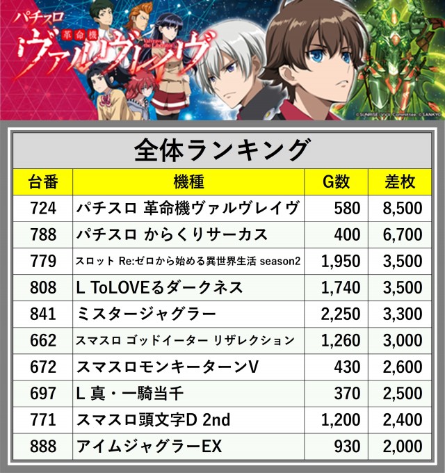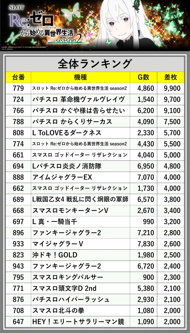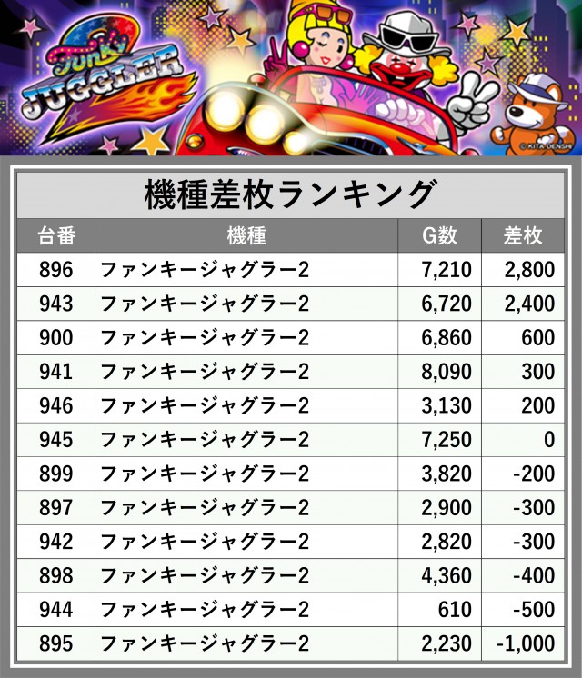 厳選された取材対象機種をはじめ、その他スロット全体から好記録が飛び出した!プレイヤーが楽しんだ1日を下記データにて振り返ってみて欲しい。