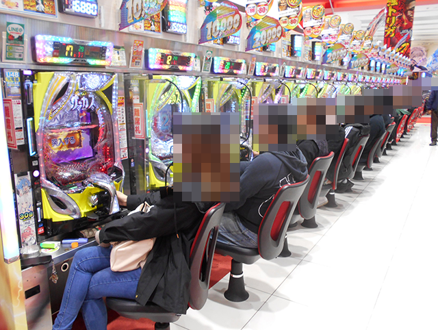 1000台以上の遊技台が設置されており、14時頃は多くのプレイヤーでにぎわいをみせていた。