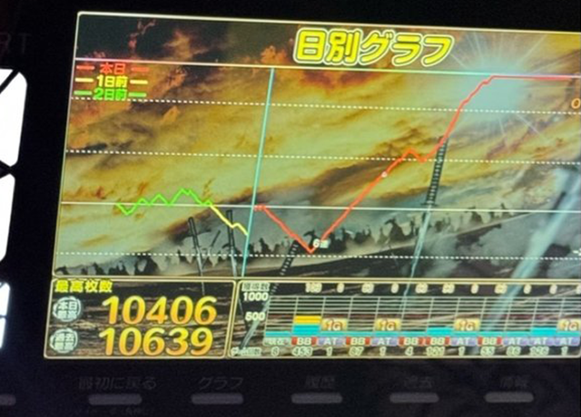 15時頃は、4台の出玉が2,000ptを超え、10,000pt以上となっている台もアリ。