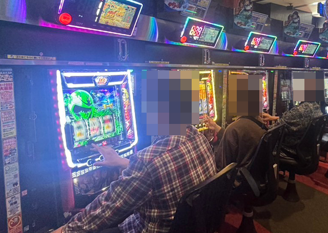 ほかにも、「スマスロ ゴッドイーター リザレクション」や「パチスロ からくりサーカス」などに遊技を満喫しているような姿があった。