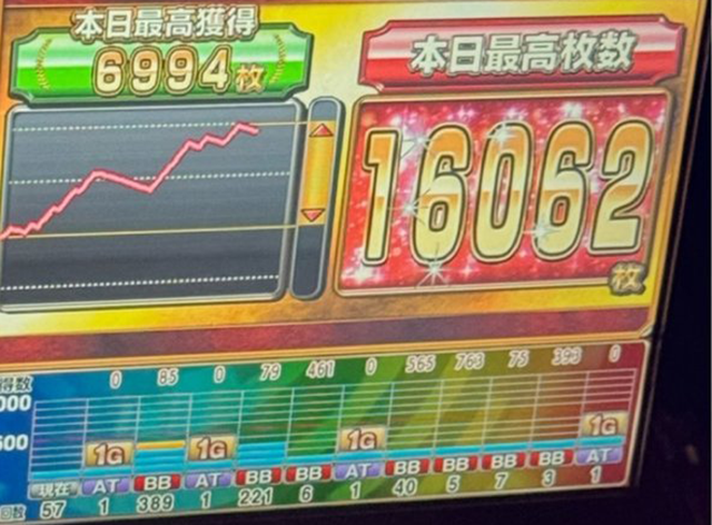 15時の時点で4台の出玉が6,000ptを超え、2台が10,000ptを上回っていた。