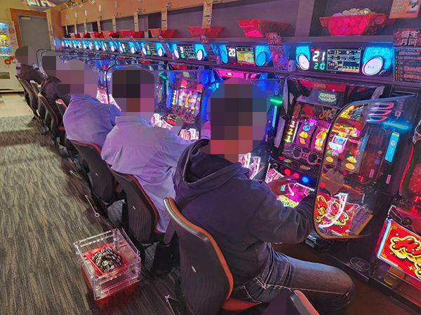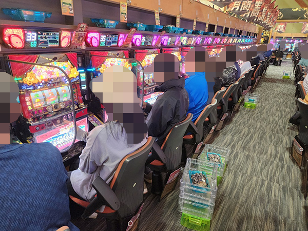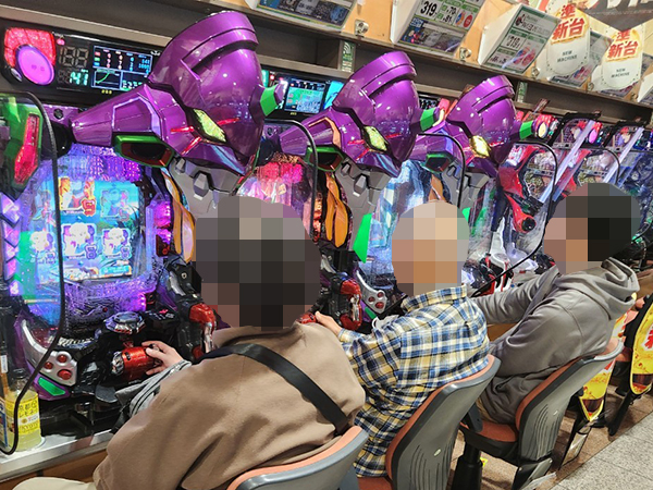 15時ごろの4円パチンコでは「新世紀エヴァンゲリオン〜未来への咆哮〜」や「Pいくさの子 織田三郎信長伝」で好調なプレイヤーが多数見受けられ、時折見せる嬉しそうな表情が印象に残っている。