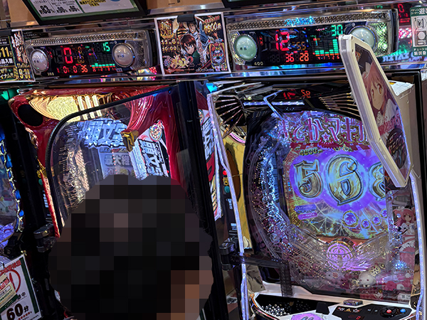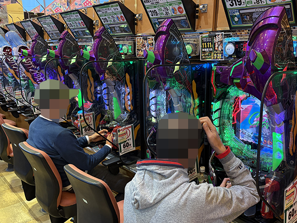 14時ごろの4円パチンコを見てみると「新世紀エヴァンゲリオン〜未来への咆哮〜」や「P北斗の拳 暴凶星」が活況。プレイヤーの満足そうな表情から、充実した時間を過ごしていたことがうかがえる。