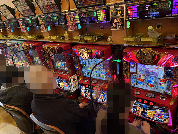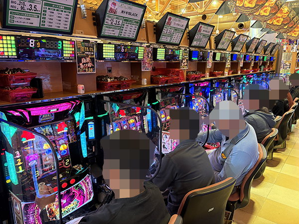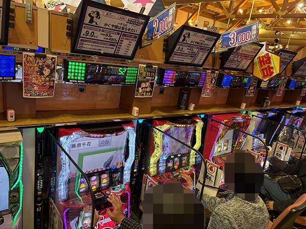取材時は多くのプレイヤーが来店。パチンコ・パチスロともに、様々な機種が支持を得ていた。