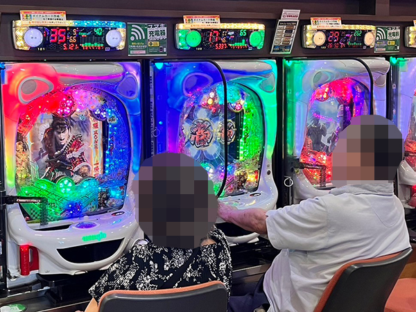15時ごろの100円/90玉パチンコを見てみると「PA真・花の慶次2〜漆黒の衝撃 99ver.」が活況。プレイヤーの満足そうな表情から、充実した時間を過ごしていたことがうかがえる。