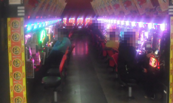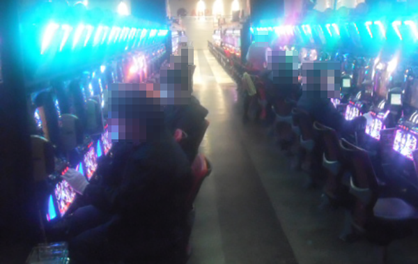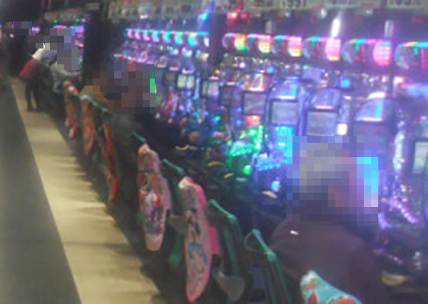 夕方頃の20円パチスロでは、「バジリスク~甲賀忍法帖~絆」や「バジリスク~甲賀忍法帖~Ⅱ」などが人気。笑顔で遊技をおこなっているプレイヤーがおり、充実した時間を過ごせていることもうかがえた。