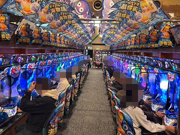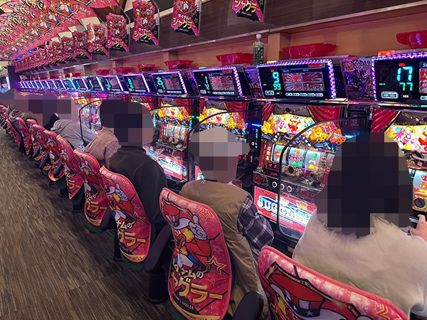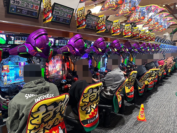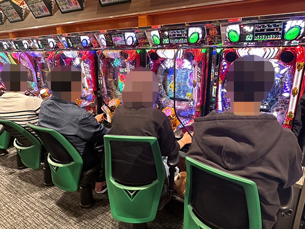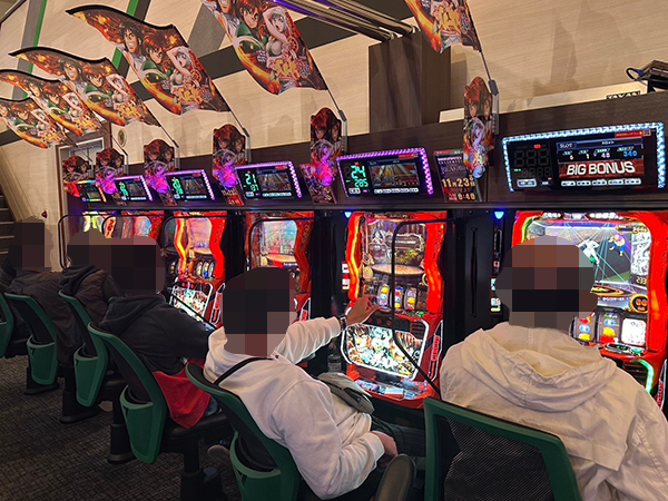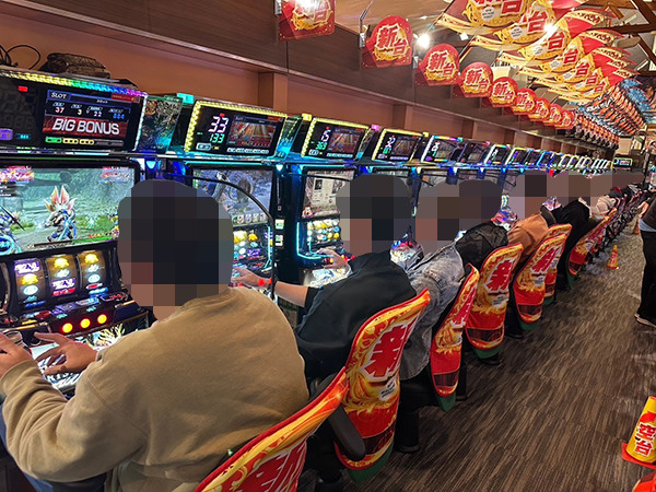 取材時は既に多くのプレイヤーが集結し、パチンコ・パチスロを問わずにぎやかな状況となっていた。