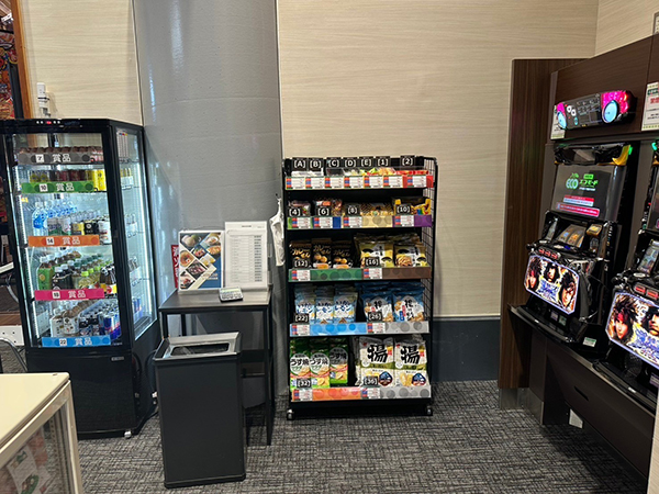 景品コーナーには来店ポイントで交換できるドリンクやお菓子が用意されており、プレイヤーから好評をだった。
