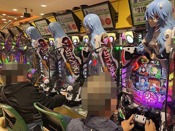 17時ごろの4円パチンコをチェックすると「P大海物語5」や「ぱちんこ シン・エヴァンゲリオン Type レイ」が盛況の様子。プレイヤーたちの満足気な表情が印象に残っている。