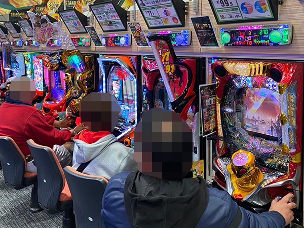 16時半ごろの200円/89玉パチンコをチェックすると「P北斗の拳 強敵 LT」や「Pルパン三世 銭形からの招待状 77Sweet Ver.」といったラッキートリガー機が好評の様子。プレイヤーの満足そうな表情から、充実した時間を過ごしていたことがうかがえる。