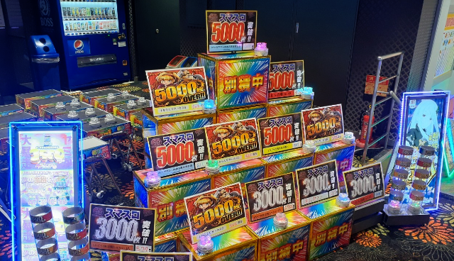 『パチスロ かぐや様は告らせたい』から+7,000枚OVERが発生し、店内の盛り上がりに貢献する形となっていた。またこれだけにとどまらず、『スロット Re:ゼロから始める異世界生活 season2』や『スマスロ ゲゲゲの鬼太郎 覚醒』『Lバキ 強くなりたくば喰らえ!!!』『スマスロ北斗の拳』『パチスロ甲鉄城のカバネリ』など多くの機種が大台突破台に続いている。遊技していたファンは凄まじい熱気を肌で感じ、同店の高い実力に酔いしれたことだろう。