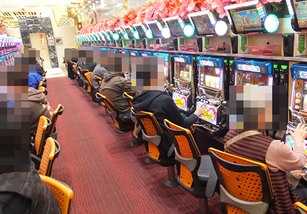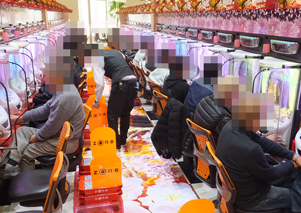 14時をまわった頃のパチンコでは、「ぱちんこCR真・北斗無双」や「CR花の慶次X~雲のかなたに~」が盛況。