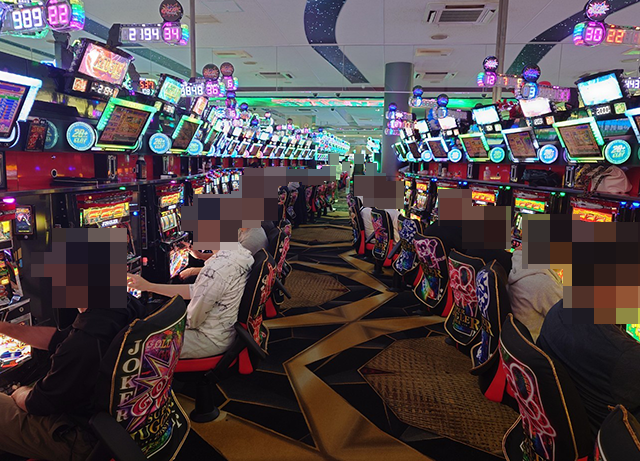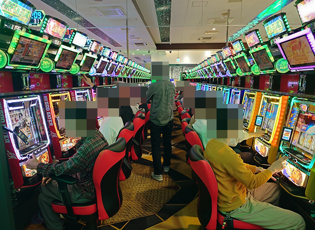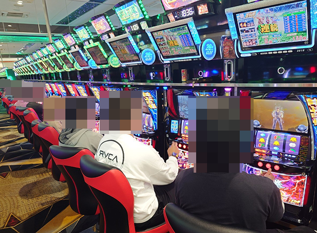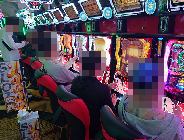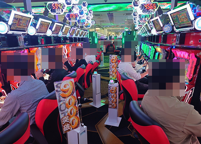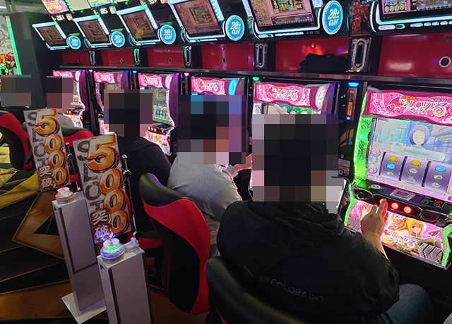 『L ToLOVEるダークネス』や『スマスロ北斗の拳』もたくさんのプレイヤーが遊技を楽しんでおり、華やかなシーンが多い。