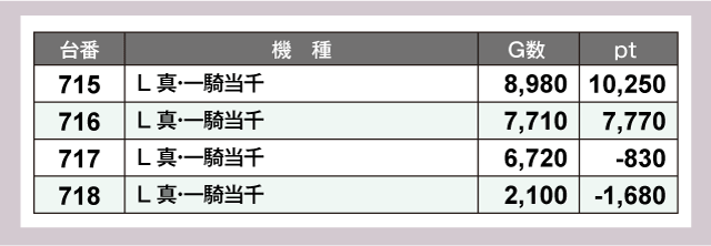 最後は『L 真・一騎当千』、715番台+10,250ptをはじめ、716番台+7,770ptと好成績をマークしていた。