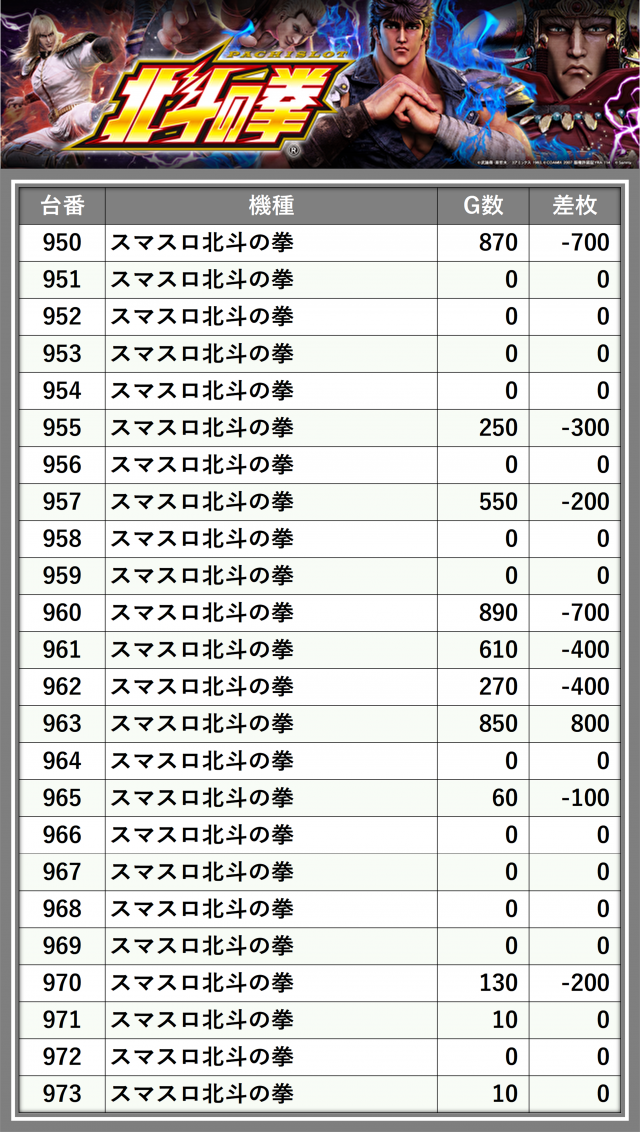 ※台番順に掲載しています