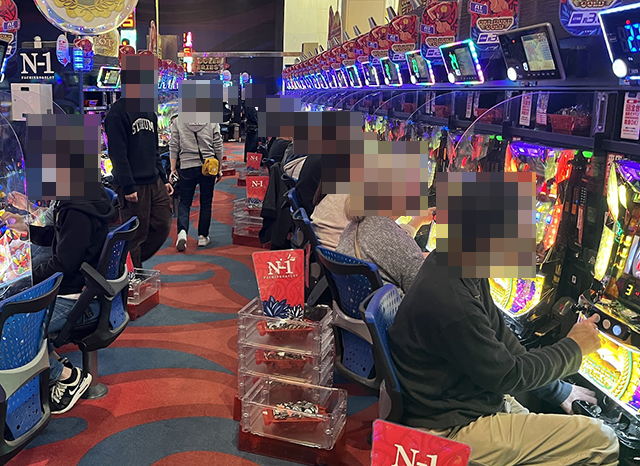 大箱5箱以上や大箱3箱以上の持ち玉を使い、うれしそうに遊技をおこなう姿があった。