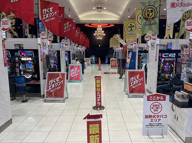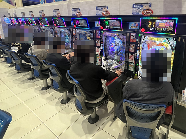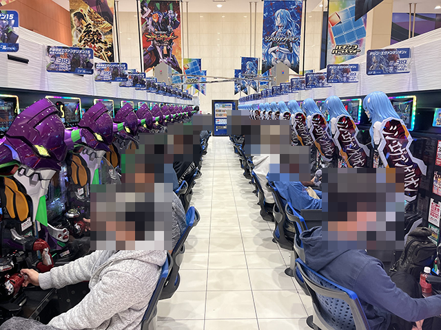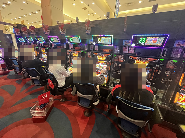 「新世紀エヴァンゲリオン~未来への咆哮~」や「ぱちんこ シン・エヴァンゲリオン Type レイ」の稼働率も高く、シマ内は盛況。