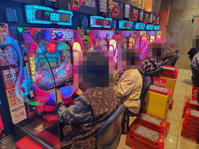 4箱以上や大箱3箱以上の持ち玉を使い、うれしそうに遊技をおこなっている姿があった。