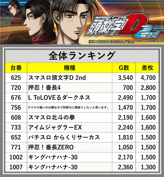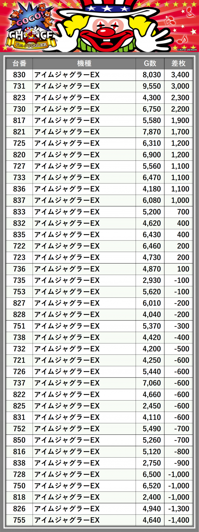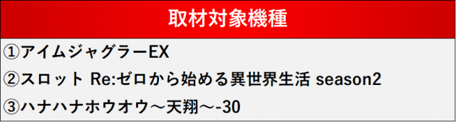 厳選された取材対象機種をはじめ、その他スロット全体から好記録が飛び出した!プレイヤーが楽しんだ1日を下記データにて振り返ってみて欲しい。