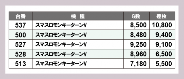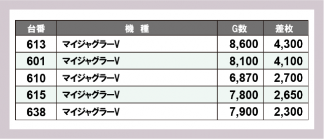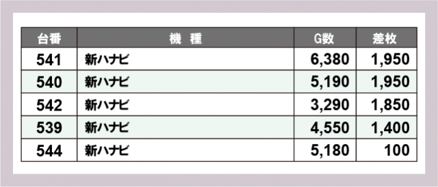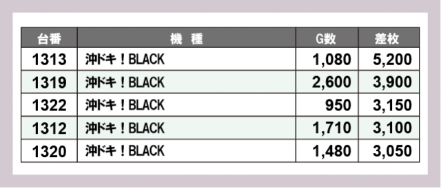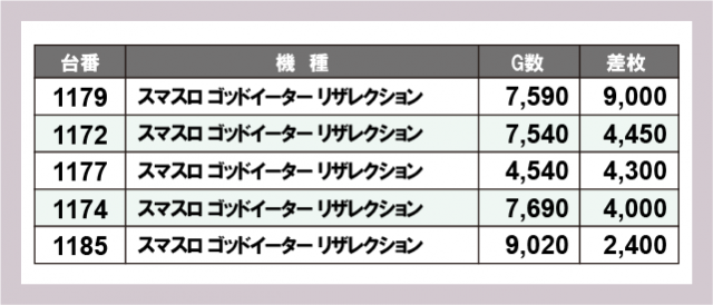 ※差枚数順に掲載しています