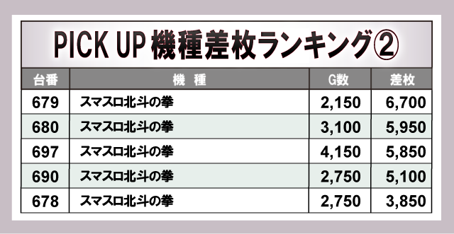 当日は5機種の優秀機種が存在しており、『L主役は銭形4』『ファンキージャグラー2』は全台プラス差枚数を達成。他にも『スマスロ北斗の拳』『スマスロモンキーターンV』といった人気機種も、ファンがじっくりと打ち込んでいた様子が窺える内容で、充実のひと時を過ごせたのではないだろうか。