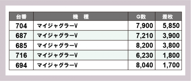 ※差枚数順に掲載しています