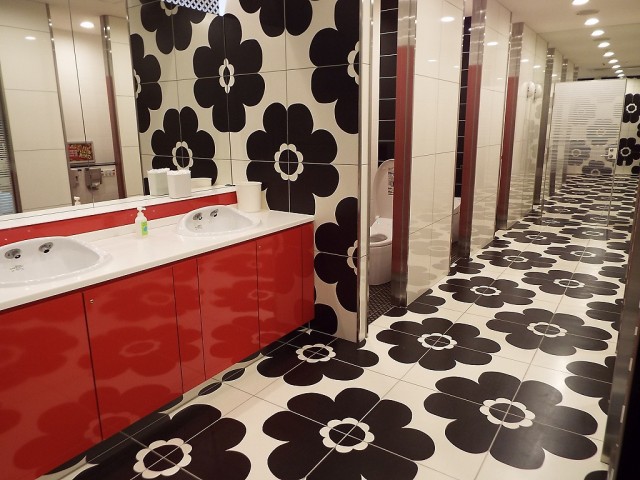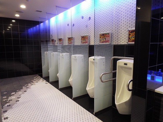 男性用トイレ(開店前にこっそり撮影させていただいた)。流石は新店舗。透き通るようにキレイだ!